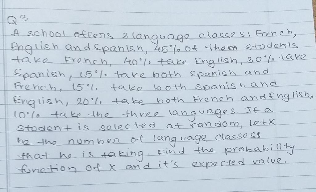 Solved A School Offers 3 Language Classes French English Chegg Com
